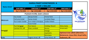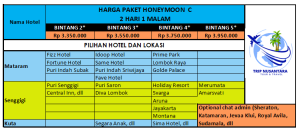 Daftar Harga paket Honeymoon Lombok Keren 2H1M Terhitung Per Couple/Berdua. Paket C