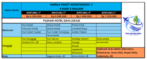 Daftar Harga Honeymoon Lombok 4H3M Terhitung Per Couple Paket C