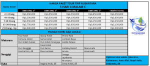 Detail Harga Paket Tour Lombok 5 Hari 4 Malam ( Paket A ) Ini Sesuai Dengan Jumlah Peserta dan Hotel Pilihan Anda