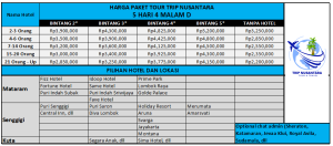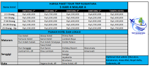 Detail Harga Paket Tour Lombok 5 Hari 4 Malam (Paket B) Ini Sesuai Dengan Jumlah Peserta dan Hotel Pilihan Anda