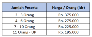 - Peserta 4 – 6 orang menggunakan innova reborn atau sejenisnya